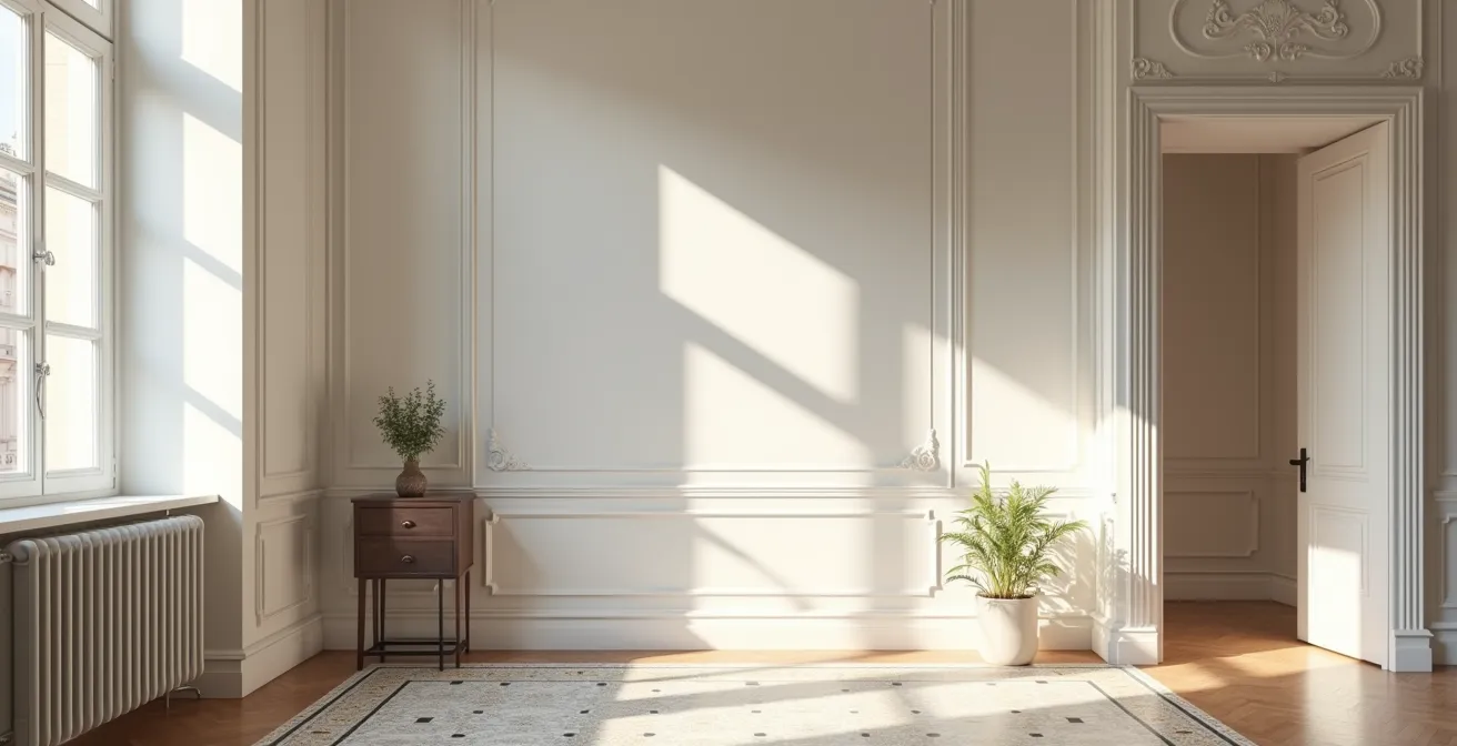 Como se aprecia en la imagen, esta luz indirecta resalta la textura y el carácter de los elementos originales, como las molduras de escayola, convirtiéndolos en un punto focal en lugar de un detalle a esconder. Para pisos interiores, donde la luz natural es escasa, es fundamental priorizar una luz difusa con LEDs de 4000K (blanco neutro) en zonas de paso y trabajo, y reservar la luz más cálida (2700-3000K) para zonas de relax, ya que realza la calidez de materiales como la madera.