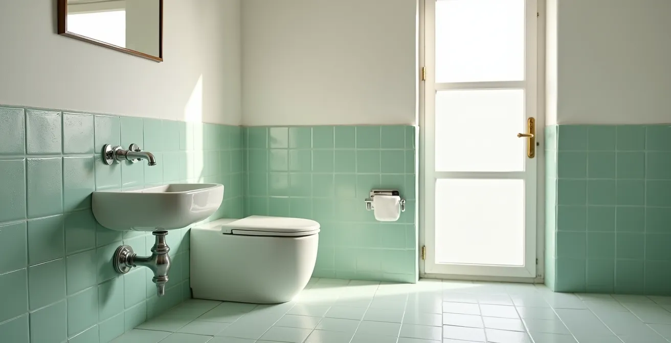 El plan de ataque para un baño de unos 6 m² se centraría en tres áreas: azulejos, techo y suelo. Para los azulejos, aplicando la técnica de imprimación y esmalte que ya hemos visto, un bote de esmalte al agua de calidad (unos 50 €) será suficiente para darles un aspecto nuevo. Para el techo, una pintura antimoho (25 €) es una inversión obligatoria para prevenir problemas futuros. El cambio más impactante puede venir del suelo: el suelo vinílico autoadhesivo es una solución fantástica. Es resistente a la humedad, fácil de instalar sobre el suelo antiguo y económico. Se pueden encontrar diseños modernos en tiendas como Bauhaus España por unos 120 € para una superficie media.