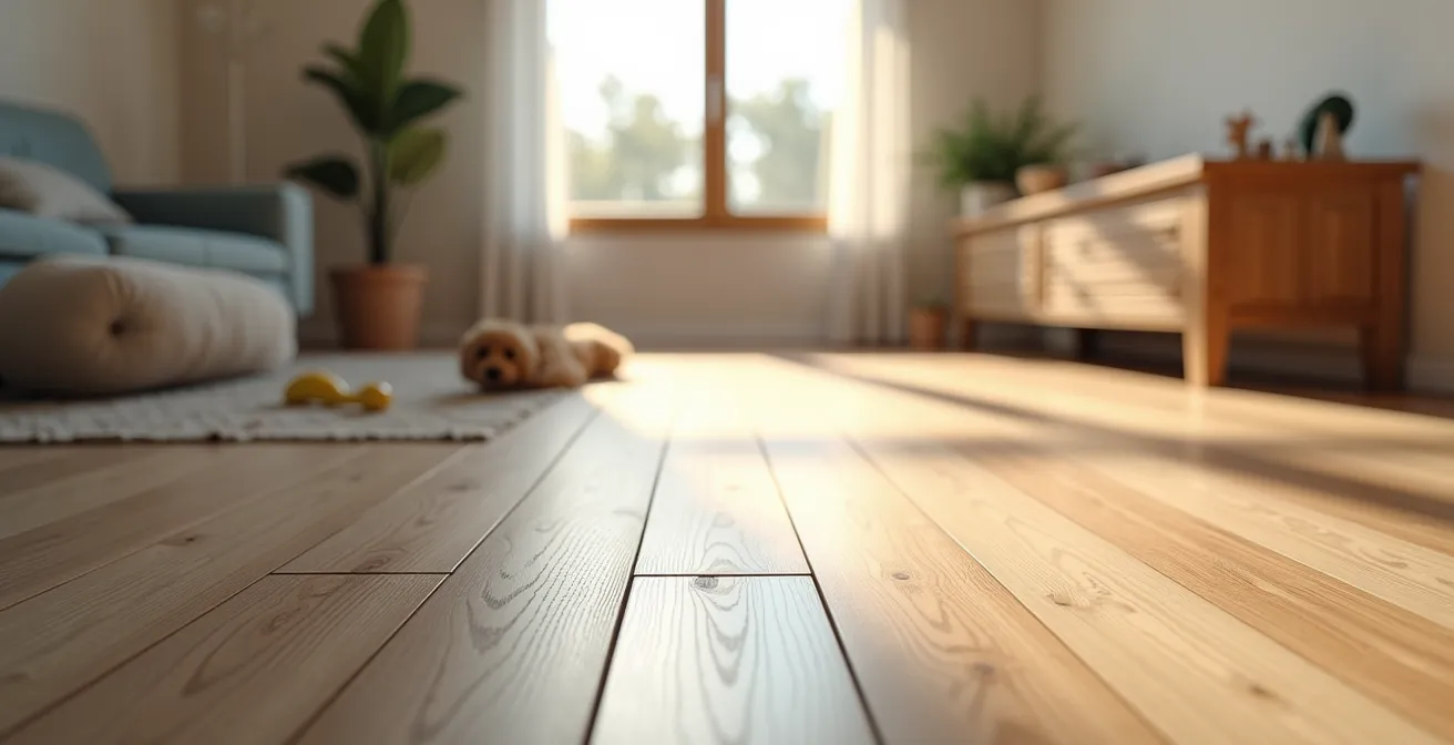 Olvídate de los argumentos de venta genéricos. La verdadera diferencia entre un suelo que sobrevive a una familia y uno que fracasa en seis meses no está en si es «bonito» o «barato». Está en entender la física de su resistencia. ¿Qué significa realmente una clasificación AC5 frente a las uñas de un perro de 30 kilos? ¿Por qué un laminado «resistente al agua» puede hincharse mientras que un vinílico no? Este artículo no es una simple comparativa de pros y contras. Es una inmersión en los detalles técnicos que marcan la diferencia, desde la composición interna de cada lama hasta los errores de instalación que pueden arruinar la mayor de las inversiones. Vamos a analizar la dureza real, la impermeabilidad, el confort térmico y acústico, y los trucos que garantizan una instalación duradera para que tomes una decisión informada y a prueba de futuro.