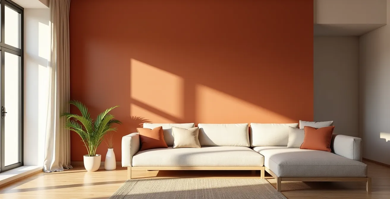 - 10% Color de Acento: Este es el espacio reservado para el terracota. No pintes todas las paredes. Úsalo en una única pared de acento (preferiblemente la que recibe más luz), en los textiles (cojines, una alfombra) o en piezas decorativas.